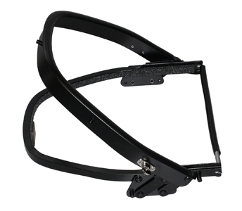 • Mit einer speziellen Mechanik kann die Schutzscheibe auch mit montierter Grubenlampe hochgeklappt und arretiert werden